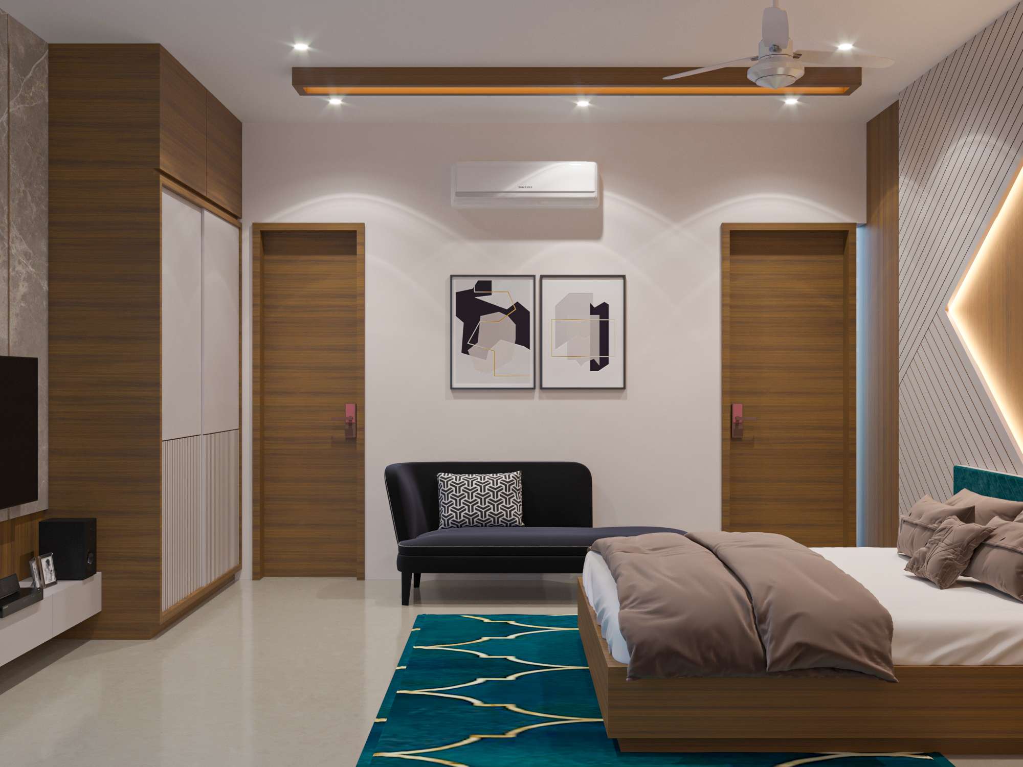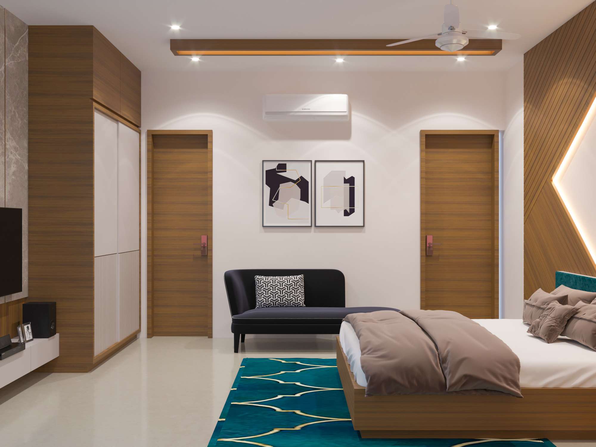 bedroom interior with veneer